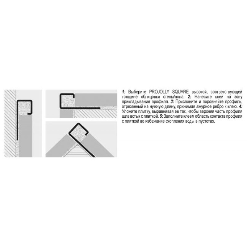 1. Выберите PROJOLLY SQUARE высотой, соответствующей толщине облицовки стены/пола.